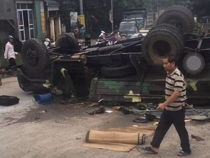 Vào khoảng 13h30 ngày 5/5, 1 xe ô tô quân sự trong lúc chở nhiều chiến sỹ ra thao trường trên quốc lộ 21A, khi đến xã Hòa Thạch (Quốc Oai, Hà Nội) thì bị lật.