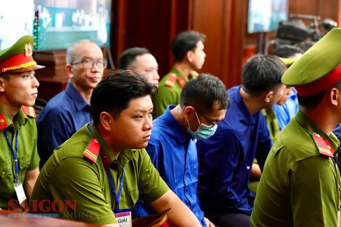 | Các bị cáo tại tòa. Ảnh: HOÀNG HÙNG |