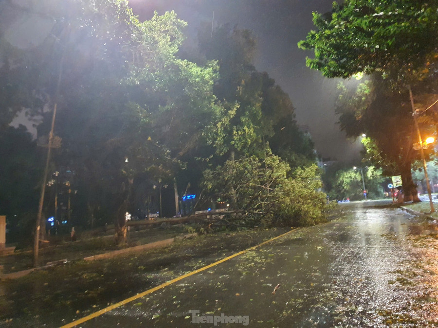 | Ở phía mặt đường Trần Nhân Tông, gió bão cũng làm nhiều cây lớn xước cành. |