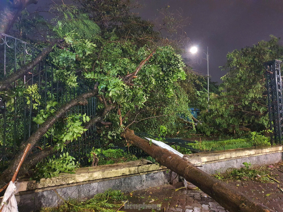 | Ghi nhận tại công viên Thống Nhất (phường Phương Liên, quận Đống Đa) – công viên cây xanh biểu tượng của TP Hà Nội lúc 23h30 ngày 7/9 – 0h00 ngày 8/9, siêu bão đã khiến hơn nửa cây cổ thụ tại mặt đường Lê Duẩn bật gốc. |