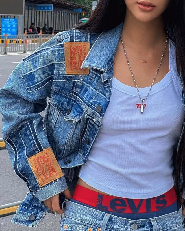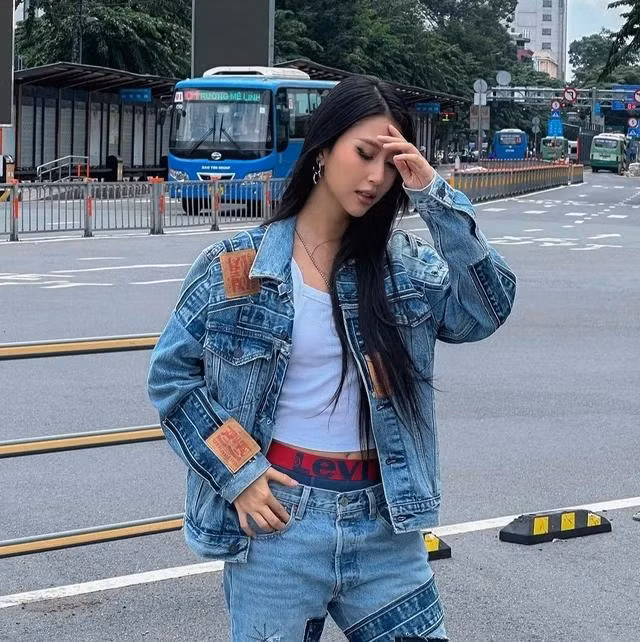 Quỳnh Anh Shyn đã thể hiện sự cá tính khi lựa chọn áo khoác và quần jeans đến từ thương hiệu Levi's. Sự lựa chọn này không chỉ mang lại cảm giác thoải mái mà còn tạo nên một phong cách trẻ trung, năng động.