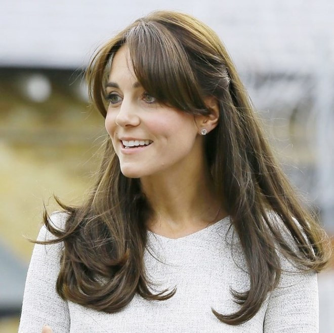 Gần như ai cũng hợp để tóc mái rèm, dù là đi chơi hay đi làm. Bạn có thể học tập phong cách lịch sự, cổ điển của công nương Kate Middleton khi chải tóc mái ngôi giữa kết hợp với kiểu tóc dài buộc nửa nữ tính. Tuy nhiên, có lẽ bạn cần phải sấy phồng tóc mái để làm cân đối các đường nét trên khuôn mặt.