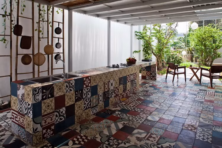 Gạch bông cũng có thể sử dụng để ốp các đồ nội thất như bàn ghế, quầy bar mini trong phòng bếp, chậu hoa, bồn cây cảnh…