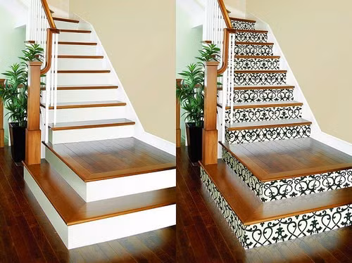 Phá cách với cầu thang bằng gạch bông đầy màu sắc.