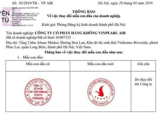 Ngày 29/5 vừa qua, phòng đăng ký kinh doanh thuộc Sở Kế hoạch - đầu tư thành phố Hà Nội đã cấp đăng ký thay đổi cho Công ty CP Phát triển thương mại và dịch vụ VinAsia đổi tên thành Công ty CP Hàng không Vinpearl Air. Cùng với việc đổi tên, ngành nghề kinh doanh chính của công ty cũng được thay đổi từ kinh doanh bất động sản sang vận tải hành khách hàng không.