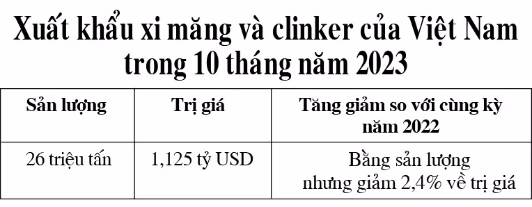 Theo Hiệp hội Xi măng Việt Nam (VNCA), nguyên nhân khiến sản lượng xuất khẩu xi măng và clinker của Việt Nam không giảm nhưng trị giá thu về giảm là vì giá mặt hàng này liên tiếp giảm trong thời gian gần đây.