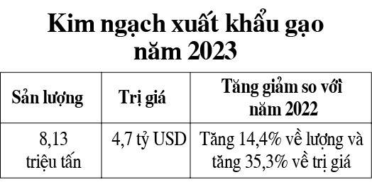 Theo các doanh nghiệp, xuất khẩu gạo của Việt Nam tăng mạnh kể từ khi Chính phủ Ấn Độ ban hành lệnh cấm xuất khẩu gạo vào tháng 7-2023. Tới nay, lệnh cấm này chưa gỡ bỏ nên kỳ vọng xuất khẩu gạo trong năm 2024 sẽ có nhiều dấu hiệu tích cực.