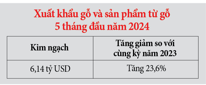 Lũy kế 5 tháng đầu năm 2024, xuất khẩu gỗ và sản phẩm từ gỗ của Việt Nam đạt 6,14 tỷ USD (tăng 23,6% so với cùng kỳ năm 2023).