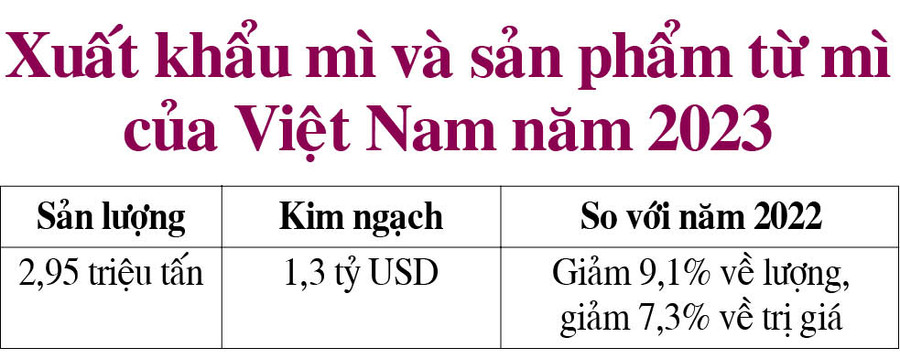 Cụ thể, xuất khẩu mì và các sản phẩm từ mì sang Trung Quốc năm 2023 đạt 2,7 triệu tấn, trị giá 1,18 tỷ USD (giảm 9,3% về lượng và giảm 7,7% về trị giá so với năm 2022). Giá xuất khẩu bình quân mì và các sản phẩm từ mì của Việt Nam sang Trung Quốc năm 2023 ở mức 438,9 USD/tấn (tăng 1,7% so với năm 2022).