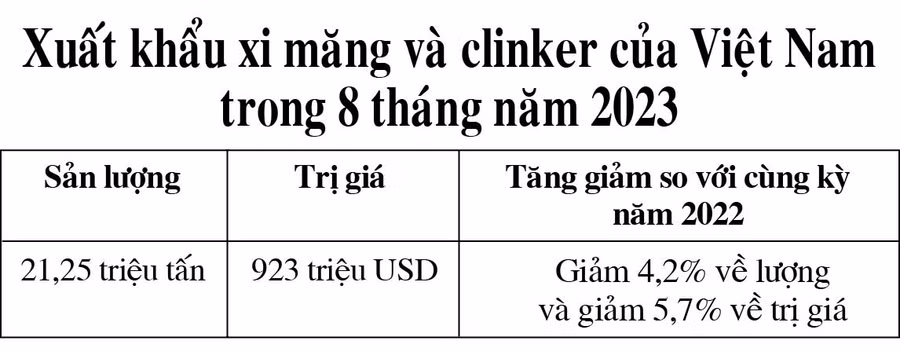 Theo Hiệp hội Xi măng Việt Nam (VNCA), nguyên nhân xuất khẩu xi măng và clinker của Việt Nam sụt giảm vì một số quốc gia đã thực hiện áp thuế, trong khi đó, thị trường Trung Quốc vẫn giảm nhập khẩu do bất động sản chưa hồi phục.
