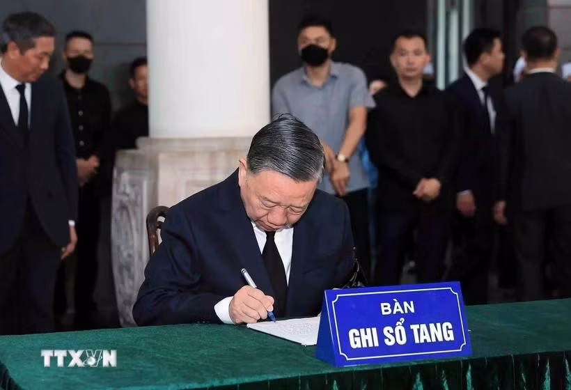 Với niềm tiếc thương vô hạn, Tổng Bí thư Tô Lâm ghi sổ tang: “Vô cùng thương tiếc đồng chí Trần Đức Lương - Người đảng viên Cộng sản trung kiên, nhà lãnh đạo tận tụy, mẫu mực, người con ưu tú của quê hương Quảng Ngãi anh hùng, giàu truyền thống Cách mạng.
