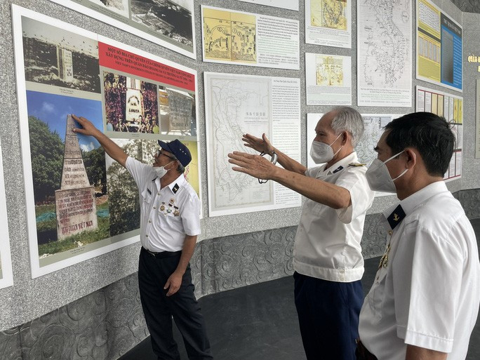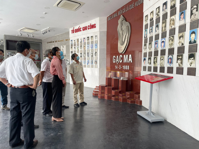 | Các đồng đội, cựu chiến binh ghé thăm bảo tàng. nơi lưu giữ tư liệu về 64 anh hùng liệt sĩ hi sinh tại Gạc Ma năm 1988 |